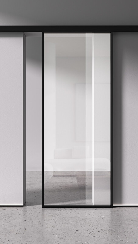 Современный дизайн: стильные двери из алюминиевого профиля — оригинальный способ эффективно разделить пространство в доме или офисе. Центральным элементом дизайна является стеклянная вставка на весь размер полотна, которая зрительно увеличивает площадь комнаты, создавая комфортную, уютную атмосферу. Модель Спейс АП 1 R подходит для раздвижной системы открывания (двери-купе).