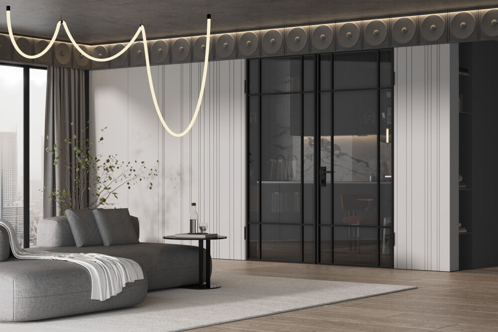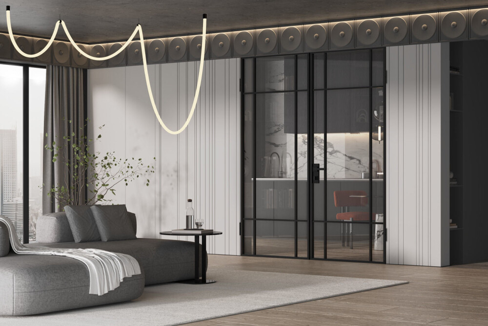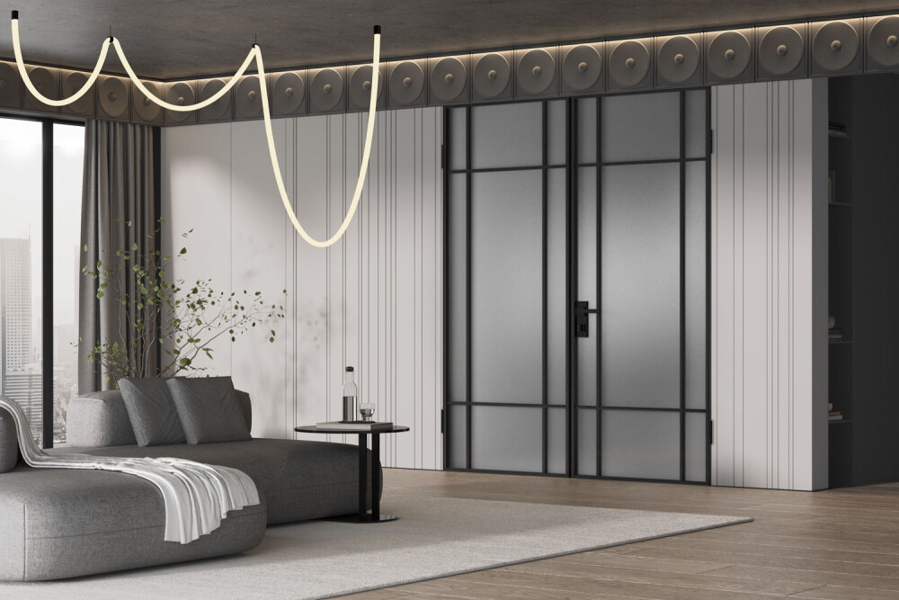 Современный дизайн: стильные межкомнатные двери в алюминиевой рамке со стеклом — оригинальный способ эффективно разделить пространство в доме или офисе. Центральным элементом дизайна является стеклянная вставка на весь размер полотна, которая зрительно увеличивает площадь комнаты, создавая комфортную, уютную атмосферу. Модель Спейс АПР 8 подходит для распашной системы открывания.