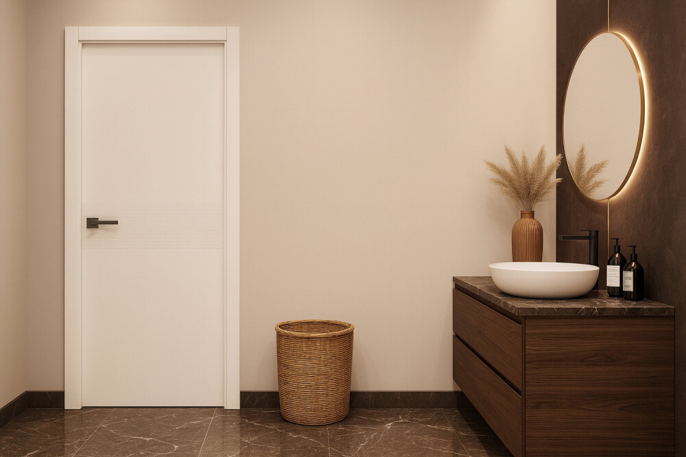 Качественная финишная отделка: специальным роботом полотно покрывается износостойкой эмалью в несколько слоев, что обеспечивает идеально ровную поверхность и защищает дверь от внешних воздействий: царапин, влаги, перепада температур.