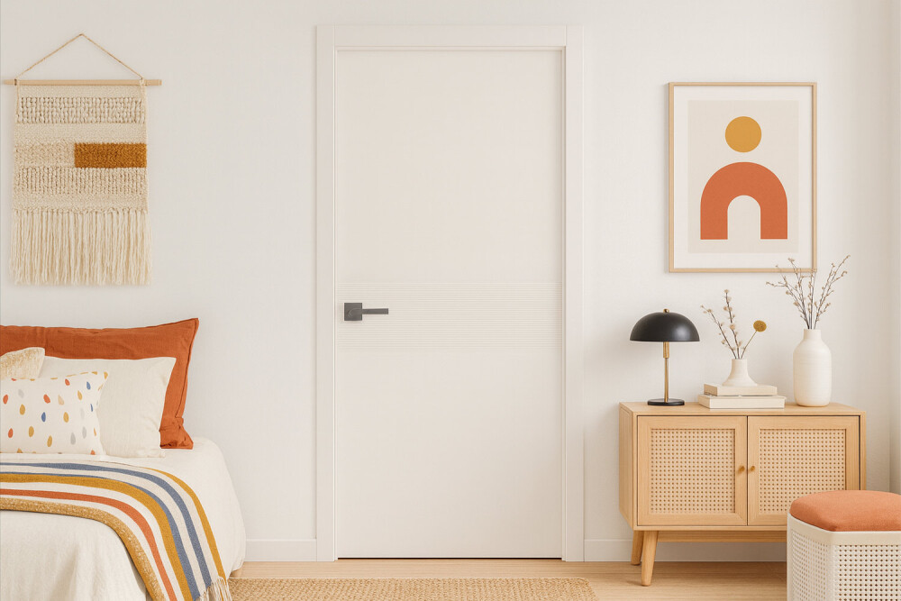 Это наличник, который образует единую плоскость с дверным полотном. Такое решение создаёт стильный минималистичный дизайн. В то же время обеспечивается экономия пространства, так как с наружной стороны дверь можно открыть полностью. Наружный наличник-компланар представляет собой накладную планку Г-образной формы, где короткая сторона соприкасается с торцом дверного полотна, а длинная прилегает к стене. С внутренней стороны дверей можно использовать телескопические наличники.
