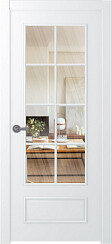 Конструкция двери: щитовая фрезерованная. Для стабильной геометрии каркас выполнен из 100%-го массива. Уникальное преимущество модели — в кромке из натурального шпона ольхи. Толщина полотна составляет 44 мм.
