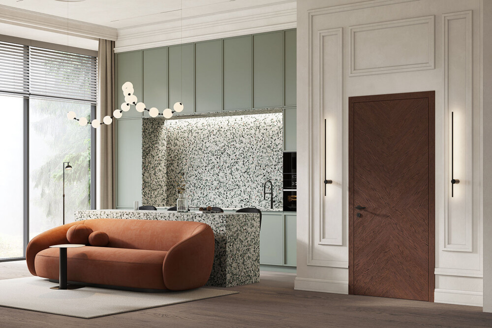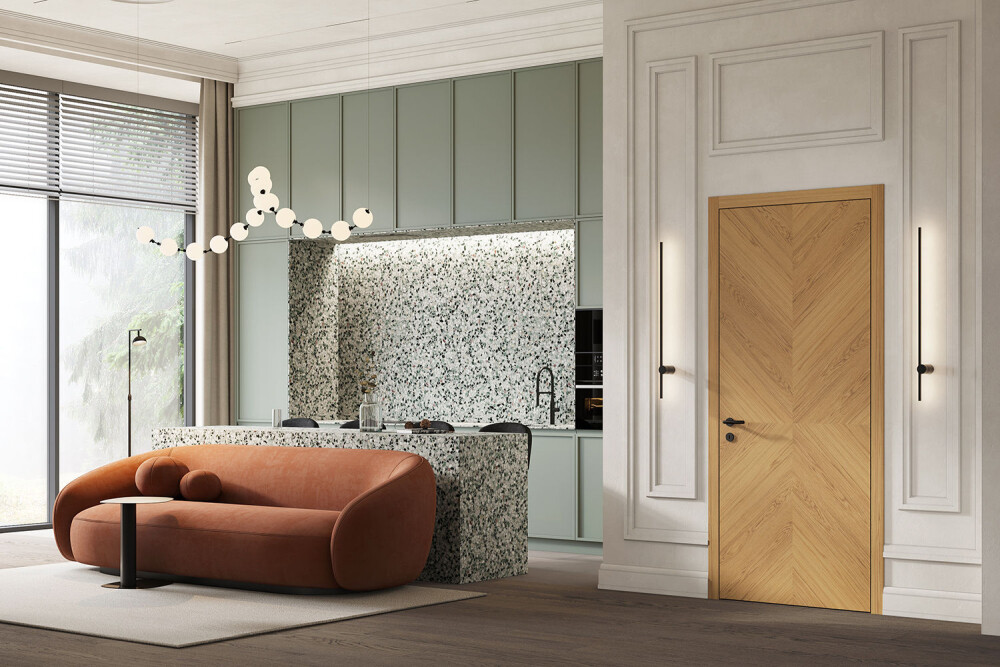 Наполнение: Smart Core — это инновационный, запатентованный заводом Belwooddoors экологически чистый материал из древесных волокон, который отвечает за звукоизоляцию и сохранение тепла внутри комнаты.