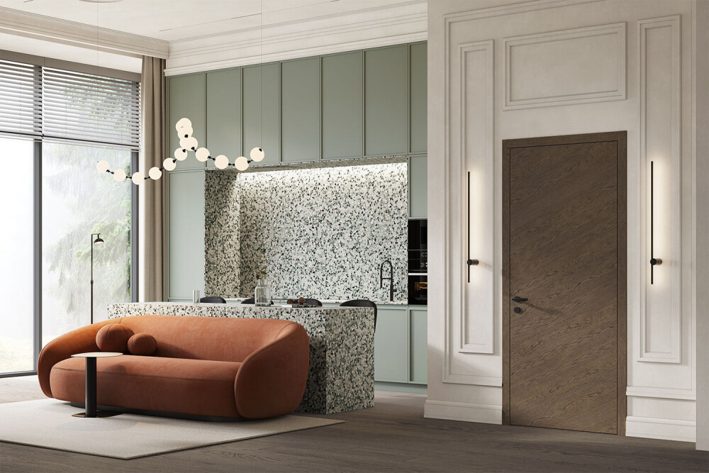 Наполнение: Smart Core — это инновационный, запатентованный заводом Belwooddoors экологически чистый материал из древесных волокон, который отвечает за звукоизоляцию и сохранение тепла внутри комнаты.