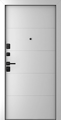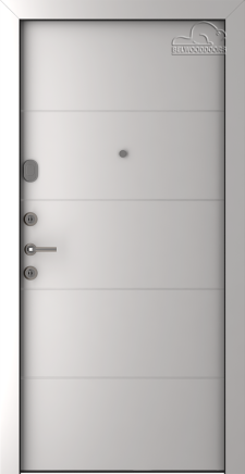 Конструкция двери: каркасно-сварная. Для данной двери используется металлическая коробка (ширина профиля — 89 мм) и 2 контура уплотнения. За прочность и надежность полотна (толщина — от 82 до 92 мм) отвечают ребра жесткости.